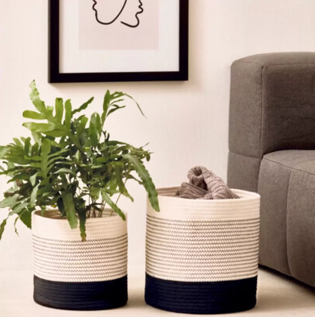 Nosso Cesto Grigio é feito com corda de Algodão.