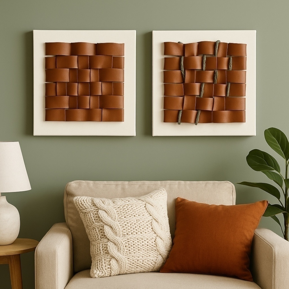 DESCRIÇÃO: O Quadro Sintonia Natural é a peça perfeita para dar um toque especial à sua decoração. Feito em tela Canva e arte em tiras de couro, cada quadro é uma obra de arte única, feito à mão. Isso garante que você tenha uma peça autêntica e cheia de charme.