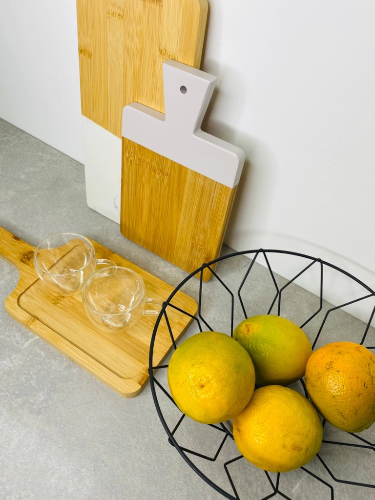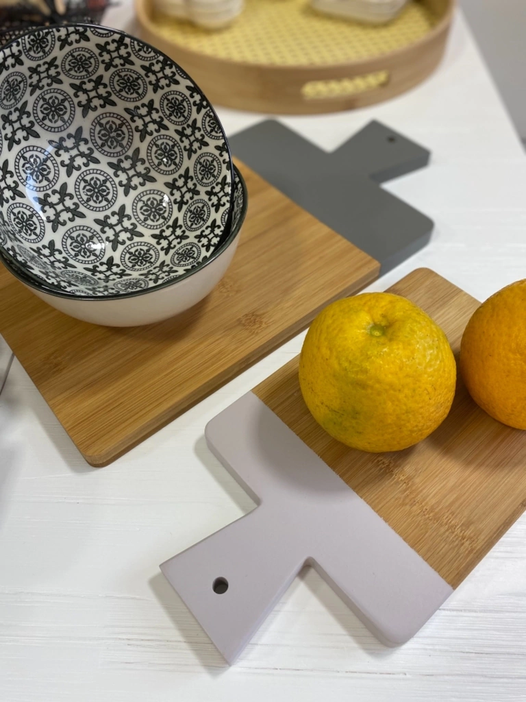 Uma tábua super moderna feita em madeira. Ótima para servir petiscos e decorar o ambiente.
